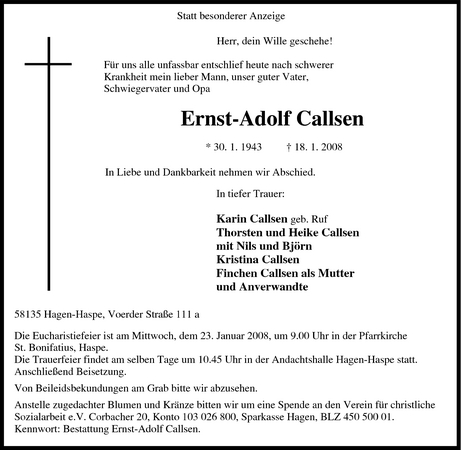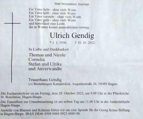 Wir trauern, weil wir ihn verloren haben und sind sogleich dankbar dafür, dass wir ihn gehabt haben.