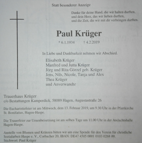 Wir sind sehr traurig, aber dankbar, dass wir dich so lange haben durften.