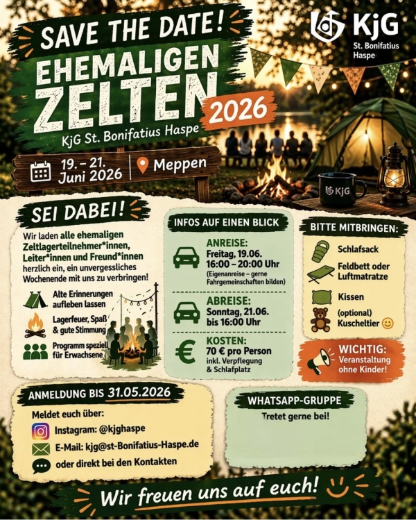 Auf Grund der aktuellen » KDG dürfen wir auf unseren Seiten keine (Personen-) Foto's oder Namen mehr veröffentlichen. Daher gibt es hier vorerst auch keine aktuellen Gruppenfoto's der Erstkommunion oder der Firmung. Auch die aktuellen Messdiener- und Lektorenpläne dürfen nicht mehr veröffentlicht werden. Die "alten" Bildergalerien sowie die Hinweise auf die Gemeindegruppen mit Namen und evtl. Telefonnummer der Ansprechpartner /-innen haben wir erhalten, damit diese Seite nicht zu einer "toten" Seite wird. Sollte jemand mit seinem Namen, Telefonnummer und / oder Bild auf diesen Seiten nicht einverstanden sein, bitten wir um kurze formlose Nachricht an internet@st-bonifatius-haspe.de. Die Daten werden dann schnellstens entfernt. Sollte sich hier in Bezug auf den Datenschutz etwas ändern, werden wir die Foto's hier wieder einstellen! Danke für Ihr Verständnis.