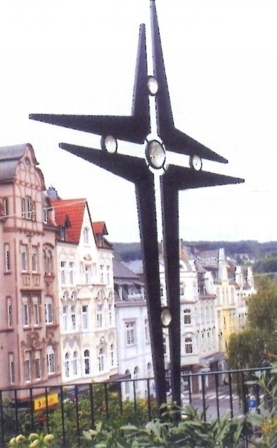 draußen vor der Kirche, hing von 1967/68 bis 1989 über dem Altar. Es ist von der Kolpingsfamilie Haspe entworfen und auch angefertigt worden. Wegen seiner Größe fand es nach der Renovierung nicht mehr seinen alten Platz über dem Altar, sondern, da es aus wetterfestem Metall ist, oberhalb der hohen Kirchentreppe. Dort wird es sowohl aus der Berliner wie aus der Tillmannsstraße gesehen.