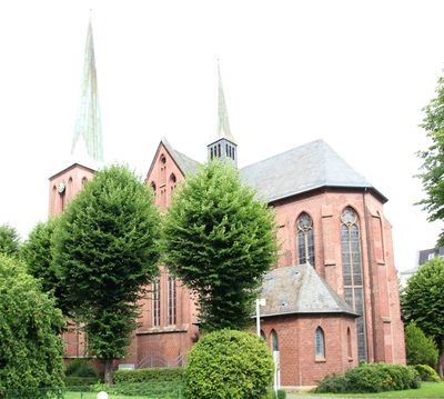 wurde 1869 -1872 im neugotischen Stil erbaut. Man versteht unter Gotik die zweite große Stilperiode der mittelalterlichen Kunst, nach der langen Periode der Romanik. Um 1150 entstand sie in Frankreich. In England, Deutschland, Italien usw. etwa 50- 80 Jahre später. Sie dauerte, ganz grob gesagt, bis etwa 1550, in Italien allerdings erheblich kürzer, weil dort schon Anfang des 14. Jahrhunderts die Gotik von der Renaissance abgelöst wurde. 300 - 400 Jahre lang wurde also in vielen Ländern Europas im gotischen Stil gebaut, nicht nur Kirchen, sondern auch Schlösser, Burgen, Rathäuser, Bürgerhäuser, Wehrtürme, Handelshäuser usw. Und so ist es verständlich, dass es auch innerhalb der Gotik noch viele verschiedene Richtungen und Stile gibt. Hier können allerdings nur einige grundsätzliche Gedanken zur Gotik gesagt werden: Als die Gotik entstand, wurde sie von vielen in Europa als neue, schlechte, ja barbarische Kunst beschimpft. Und sie wurde mit den Goten in Verbindung gebracht, einem germanischen Stamm, der in fast ganz Europa herumgezogen war. Deshalb war das Wort Gotik zunächst als Beschimpfung gedacht, wurde dann aber mehr und mehr in ganz Europa zum geschätzten Markenzeichen.