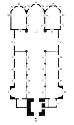 (Die Nummern der Fenster auf dem Grundriss entsprechen den Nummern in der folgenden Auflistung.)